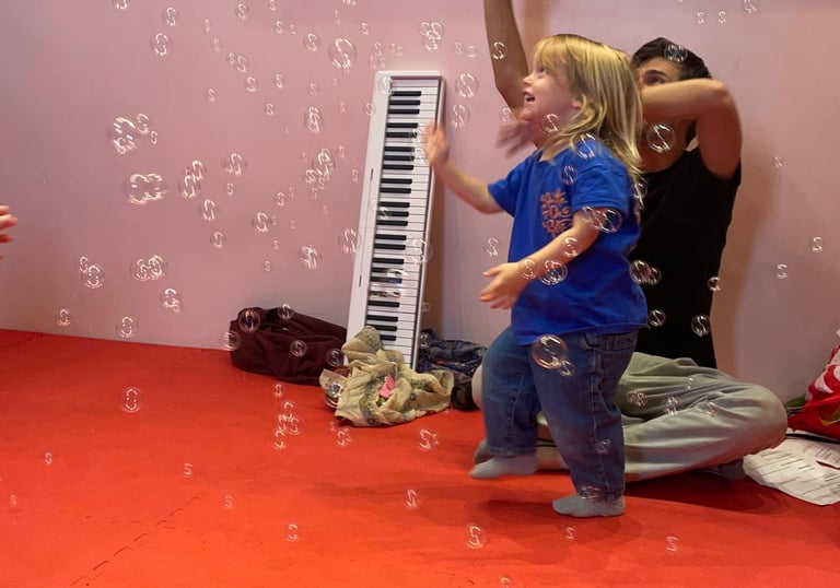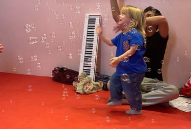 Baby-friendly environment with fun music and gentle activities for young children.